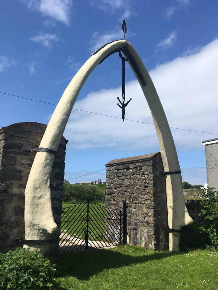 Meeting Tom on his penny farthing at the top of the North Harris hills. Last time I looked he had raised £12.5k for the Stroke Association. Then there was the weird Tractor Rally on North Uist. Plus pictures you haven’t seen in previous blogs of an incredibly remote tennis court on Harris and the whalebone arch in someone’s garden at Bragar.