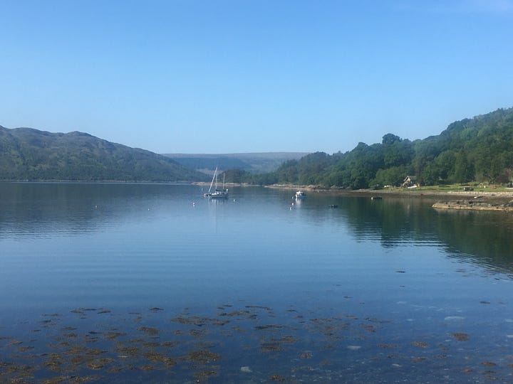 Round the remote Moidart peninsula, once ruled by the MacDonald clan, to the southern tip of Loch Shiel. If I’d gone to the northern tip then I’d have seen the Glenfinnan viaduct made famous by Harry Potter which become a magnet for his fans, particularly Chinese visitors. There’s a regular train service and also steam specials which I’m sure Messrs Palin and Portillo will have been on. But not me this time. Instead, I arrived early at my hotel - yes, a fully deserved night of luxury - and went off to a local beach with my trusty companion for a picnic. Sublime.